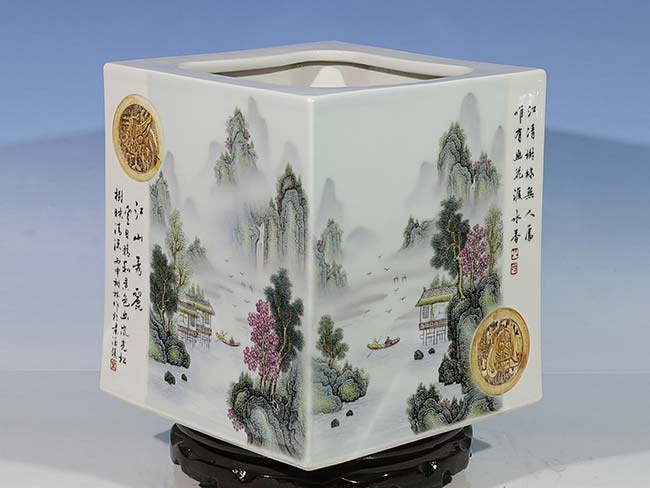 200件粉彩镶器__江山秀丽__