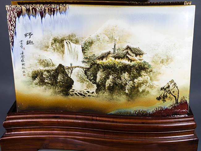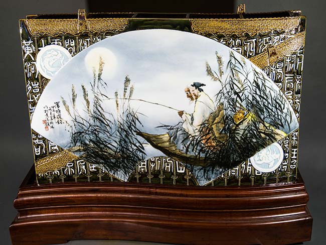 600件釉上彩镶器_芦塘夜钓_