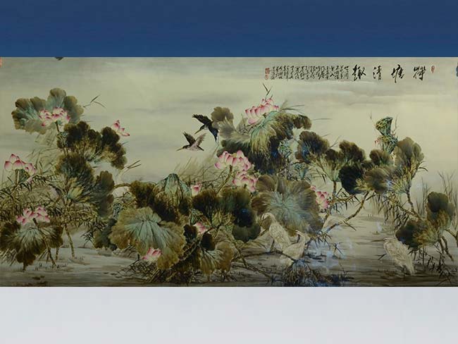 2.4m#1.35m粉彩瓷板《荷塘清趣》