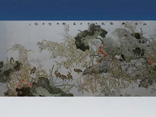 1.75m#0.85m釉上彩瓷板《湖塘幽趣》