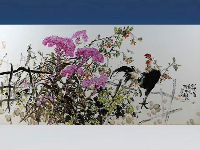 3.6尺中堂釉上彩瓷板__昂首秋风__