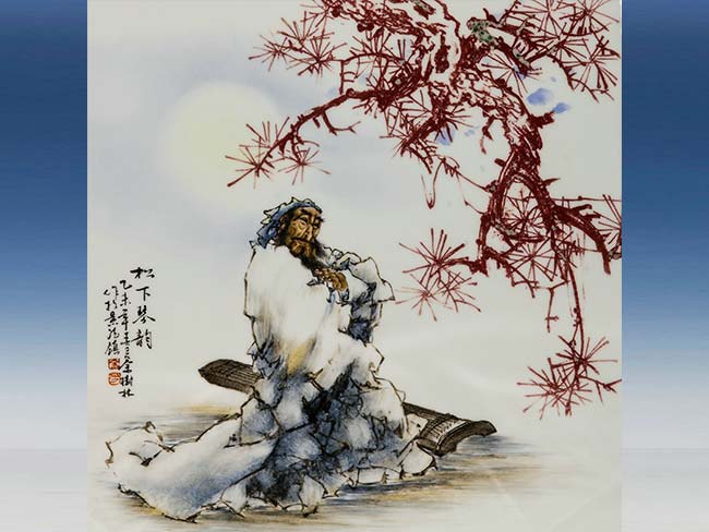 40cm_40cm釉里红斗彩瓷板__松下琴韵__
