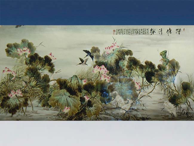 2.4m#1.2m粉彩瓷板《荷塘清趣》