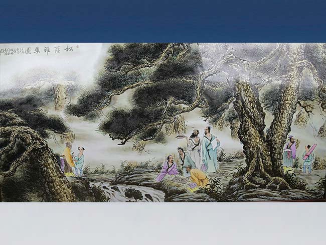 1.75m0.85m粉彩瓷板《松阴雅集图》a
